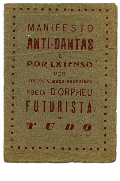 Manifesto Anti-Dantas e por extenso / por José de Almada-Negreiros poeta d'Orpheu futurista e tudo. – [Lisboa]: Ed. do A., [1916]