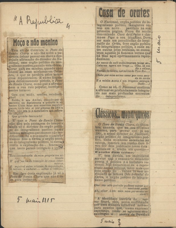 Este recorte é parte integrante do conjunto reunido por Mário de Sá-Carneiro no caderno Esp. E3/155.
